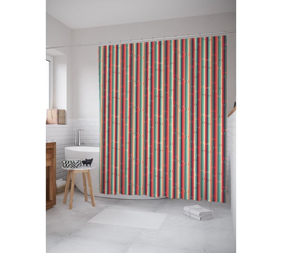 Штора (занавеска) для ванной JoyArty "Наложение вертикали" из сатена, 180х200 см с крючками, sc_58042
