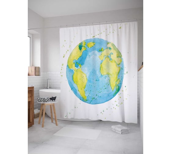 Штора (занавеска) для ванной JoyArty "Нарисованная планета" из сатена, 180х200 см с крючками, sc_37998