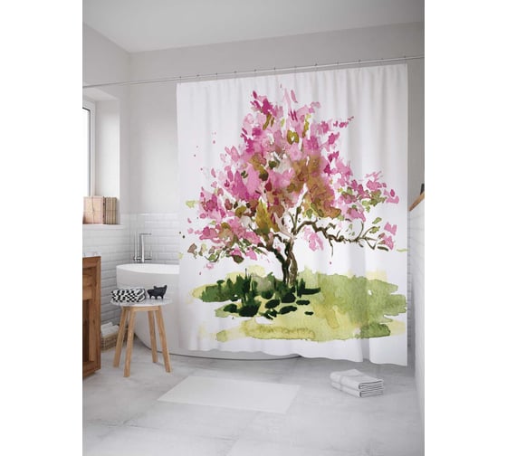 Штора (занавеска) для ванной JoyArty "Нарисованное дерево" из сатена, 180х200 см с крючками, sc_4901