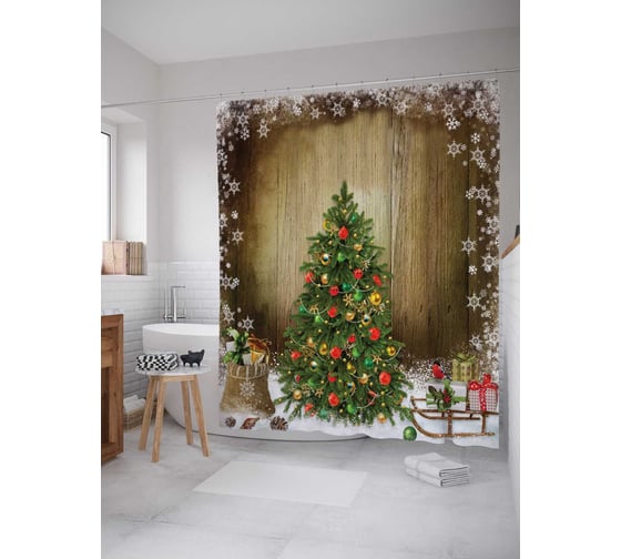 Штора (занавеска) для ванной JoyArty "Нарядная елка" из сатена, 180х200 см с крючками, sc_5594