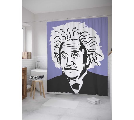 Штора (занавеска) для ванной JoyArty "Нарядный эйнштейн" из сатена, 180х200 см с крючками, sc_8623
