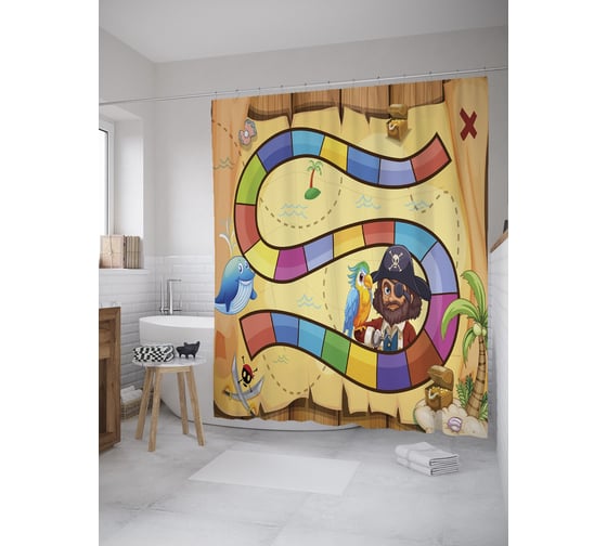 Штора (занавеска) для ванной JoyArty "Настольная игра Пираты" из сатена, 180х200 см с крючками, sc_55273