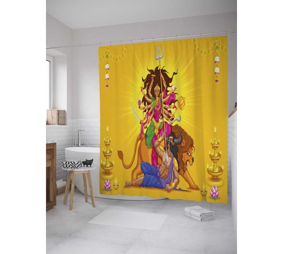 Штора (занавеска) для ванной JoyArty "Наваратри" из сатена, 180х200 см с крючками, sc_33914