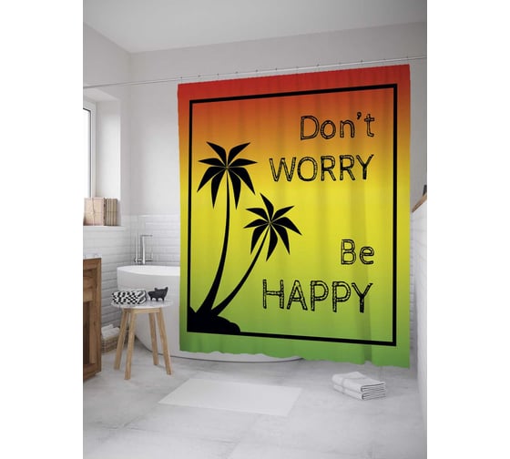 Штора (занавеска) для ванной JoyArty "Не бойся быть счастливым" из сатена, 180х200 см с крючками, sc_36089
