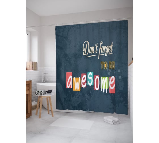 Штора (занавеска) для ванной JoyArty "Не забывай быть крутым" из сатена, 180х200 см с крючками, sc_53227