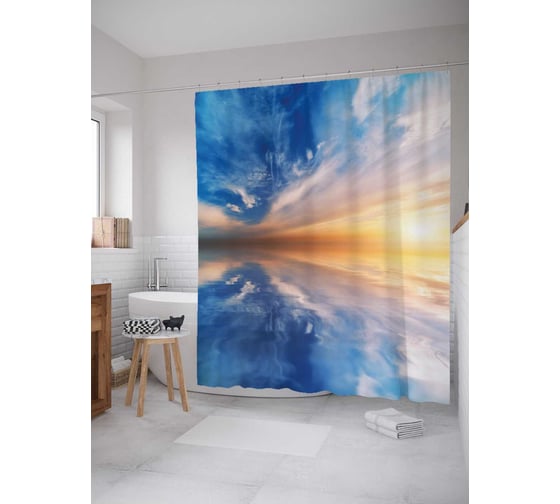 Штора (занавеска) для ванной JoyArty "Небесное течение" из сатена, 180х200 см с крючками, sc_17590