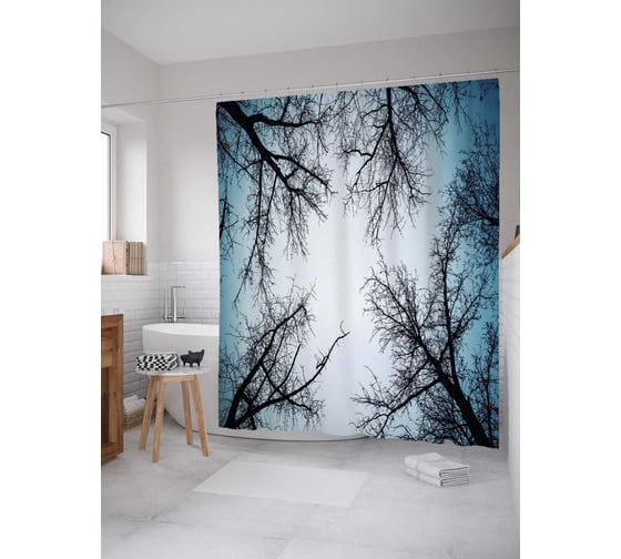 Штора (занавеска) для ванной JoyArty "Небесный лес" из сатена, 180х200 см с крючками, sc_3441
