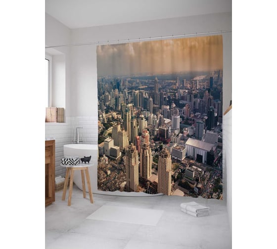 Сопутствующие товары для шторки-занавески JOYARTY Небоскребы Бангкока из сатена, 180х200 см с крючками