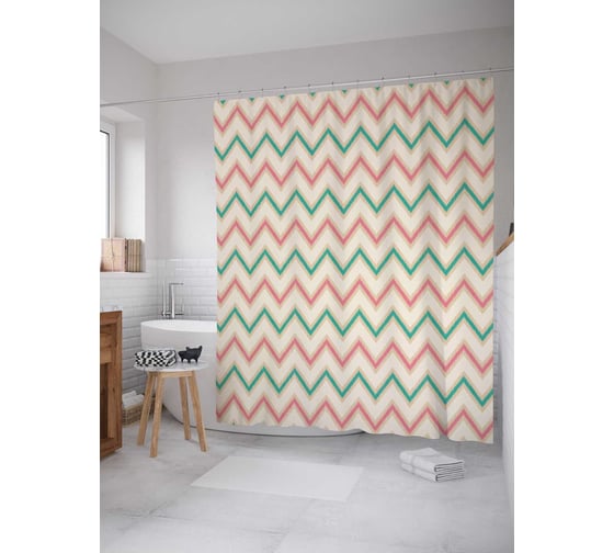 Штора (занавеска) для ванной JoyArty "Необычные зигзаги" из сатена, 180х200 см с крючками, sc_17175