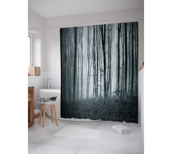 Штора (занавеска) для ванной JoyArty "Невообразимый лес" из сатена, 180х200 см с крючками, sc_18112