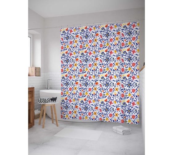 Штора (занавеска) для ванной JoyArty "Нежная радость" из сатена, 180х200 см с крючками, sc_17929