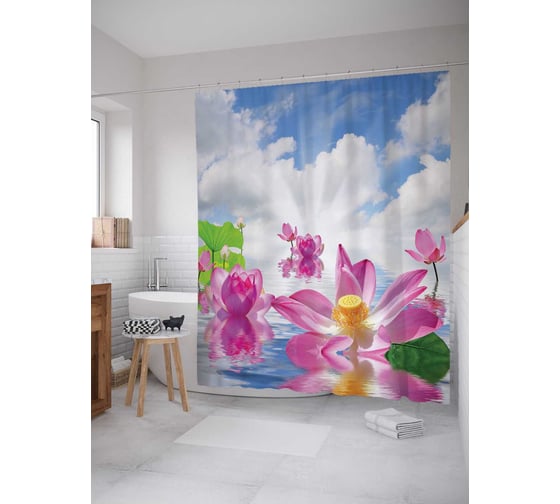 Штора (занавеска) для ванной JoyArty "Нежные водные лилии" из сатена, 180х200 см с крючками, sc_2636