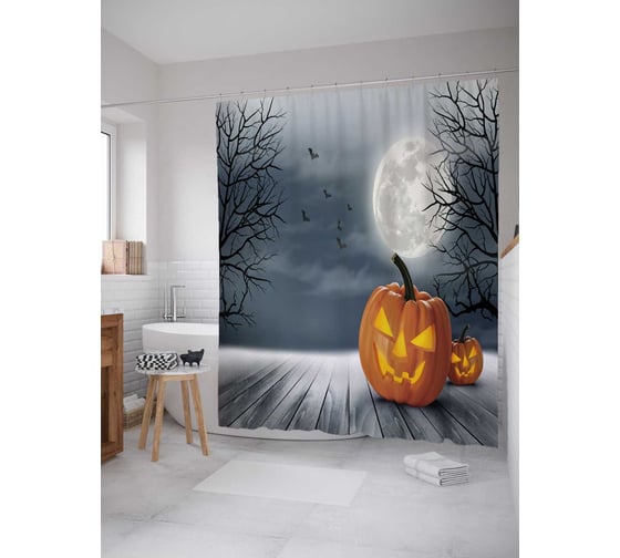 Штора (занавеска) для ванной JoyArty "Ночь на Хеллоуин" из сатена, 180х200 см с крючками, sc_36738