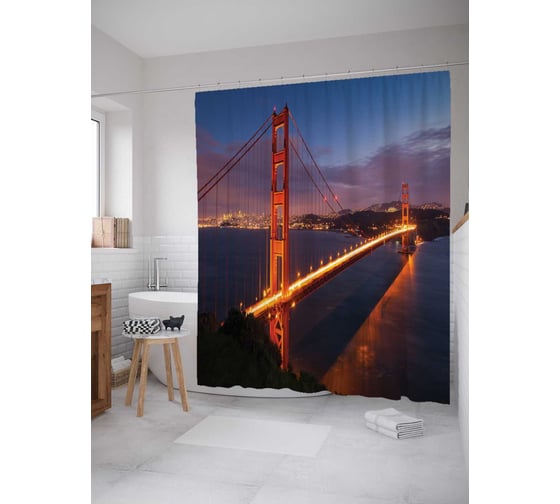 Штора (занавеска) для ванной JoyArty "Ночь на мосту" из сатена, 180х200 см с крючками, sc_12221