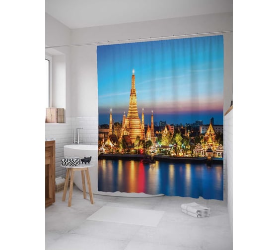 Штора (занавеска) для ванной JoyArty "Ночь в огнях" из сатена, 180х200 см с крючками, sc_12177