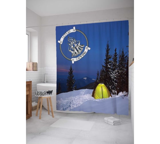 Штора (занавеска) для ванной JoyArty "Ночевка на снегу" из сатена, 180х200 см с крючками, sc_7653
