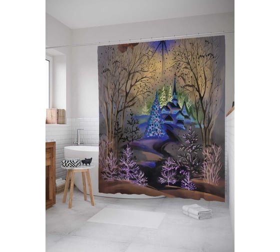 Сопутствующие товары для шторки-занавески JOYARTY Ночная дорога к дворцу из сатена, 180х200 см с крючками