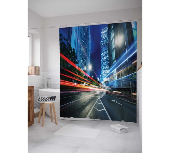 Штора (занавеска) для ванной JoyArty "Ночная скорость" из сатена, 180х200 см с крючками, sc_4865