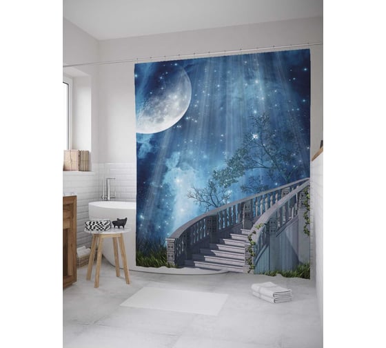 Штора (занавеска) для ванной JoyArty "Ночное небо" из сатена, 180х200 см с крючками, sc_31577