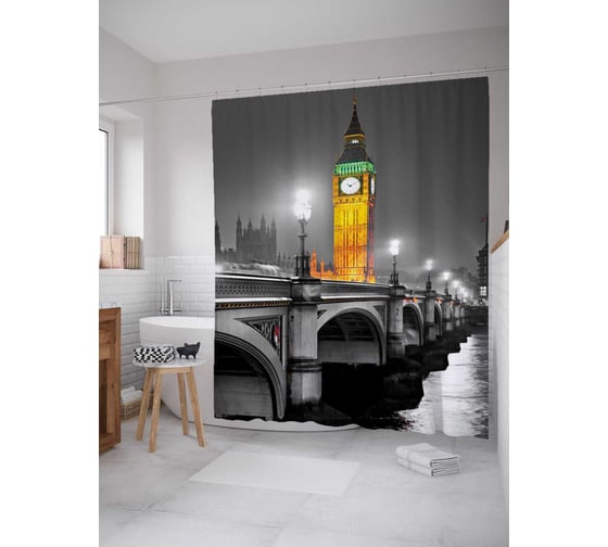 Сопутствующие товары для шторки-занавески JOYARTY Ночной Биг Бен из сатена, 180х200 см с крючками