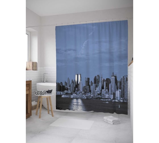 Штора (занавеска) для ванной JoyArty "Ночной город спит" из сатена, 180х200 см с крючками, sc_32578