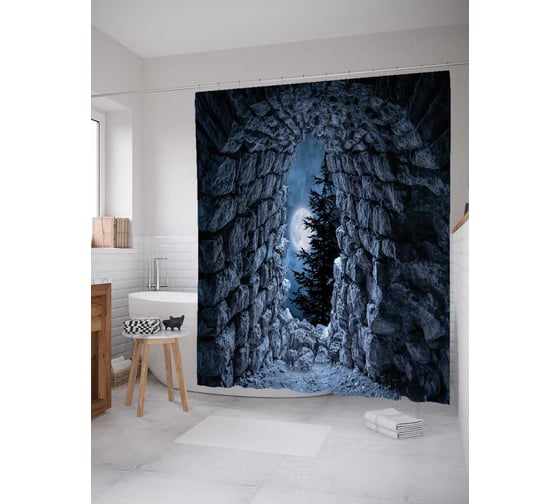 Штора (занавеска) для ванной JoyArty "Ночной побег" из сатена, 180х200 см с крючками, sc_15448