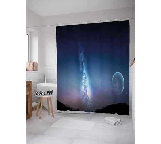 Штора (занавеска) для ванной JoyArty "Ночные чудеса" из сатена, 180х200 см с крючками, sc_18116