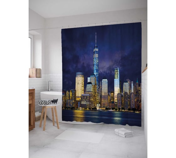 Штора (занавеска) для ванной JoyArty "Ночные огни города" из сатена, 180х200 см с крючками, sc_30914