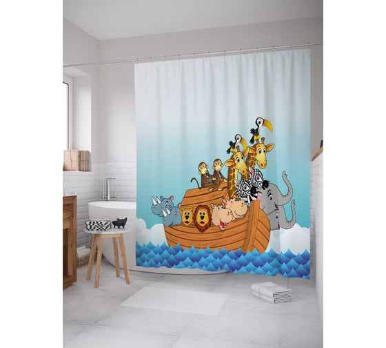 Штора (занавеска) для ванной JoyArty "Ноев ковчег" из сатена, 180х200 см с крючками, sc_15350