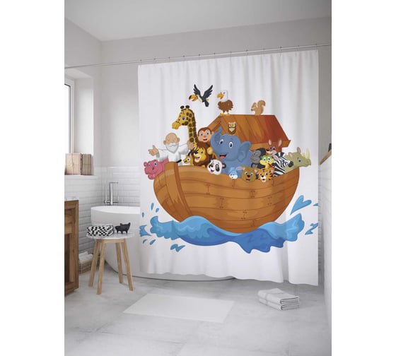 Штора (занавеска) для ванной JoyArty "Ной и звери" из сатена, 180х200 см с крючками, sc_9436