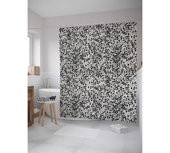 Сопутствующие товары для шторки-занавески JOYARTY Ноты вперемешку из сатена, 180х200 см с крючками