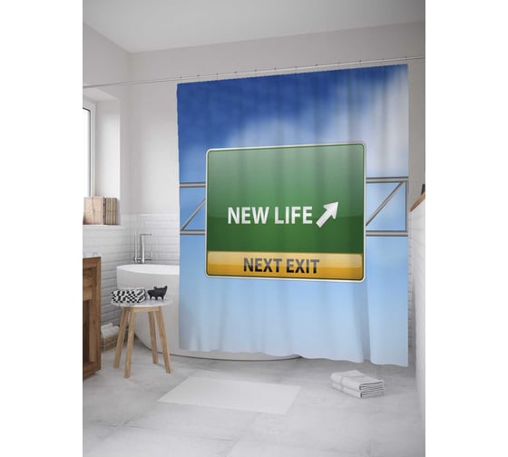 Штора (занавеска) для ванной JoyArty "Новая жизнь" из сатена, 180х200 см с крючками, sc_34647