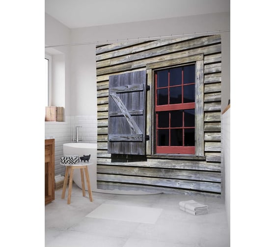 Штора (занавеска) для ванной JoyArty "Нужно закрывать окна" из сатена, 180х200 см с крючками, sc_14207