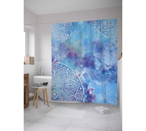 Штора (занавеска) для ванной JoyArty "Облачные кружева" из сатена, 180х200 см с крючками, sc_8319