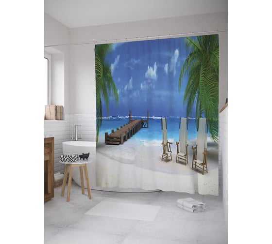 Штора (занавеска) для ванной JoyArty "Облачный пирс" из сатена, 180х200 см с крючками, sc_9374