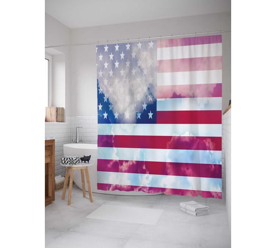 Штора (занавеска) для ванной JoyArty "Облака на флаге америки" из сатена, 180х200 см с крючками, sc_20723