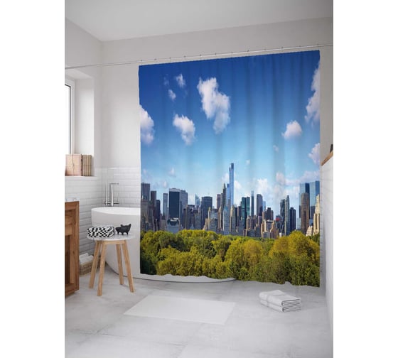 Штора (занавеска) для ванной JoyArty "Облака над городом" из сатена, 180х200 см с крючками, sc_38511