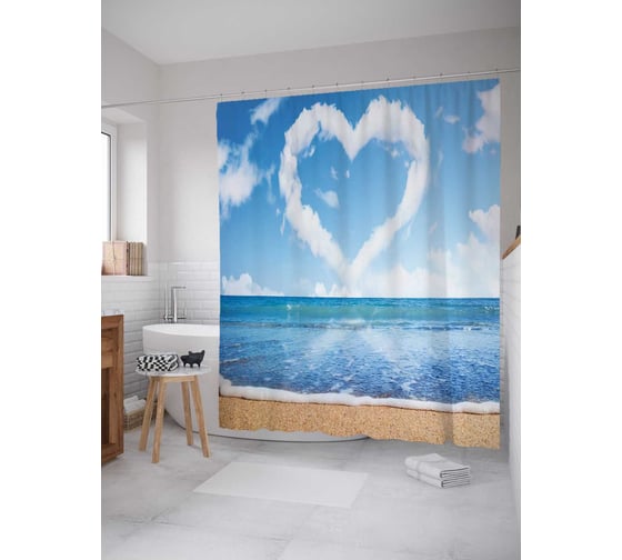Штора (занавеска) для ванной JoyArty "Облако любви" из сатена, 180х200 см с крючками, sc_7277