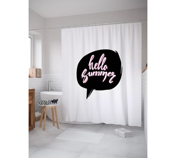 Штора (занавеска) для ванной JoyArty "Облако с обращением" из сатена, 180х200 см с крючками, sc_53746