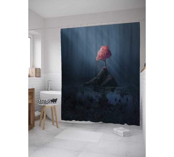 Штора (занавеска) для ванной JoyArty "Одинокое дерево на острове" из сатена, 180х200 см с крючками, sc_35355