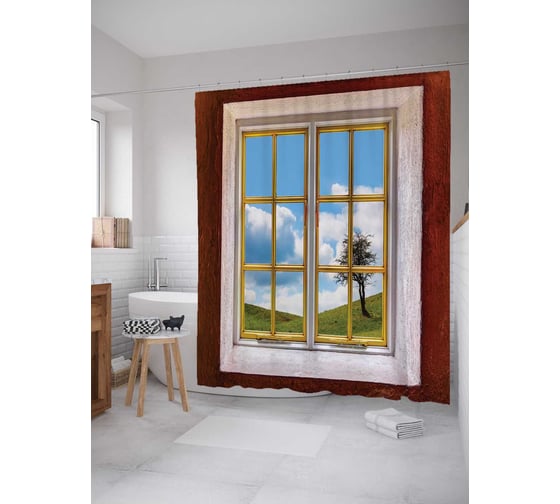 Штора (занавеска) для ванной JoyArty "Одинокое дерево у окна" из сатена, 180х200 см с крючками, sc_16498
