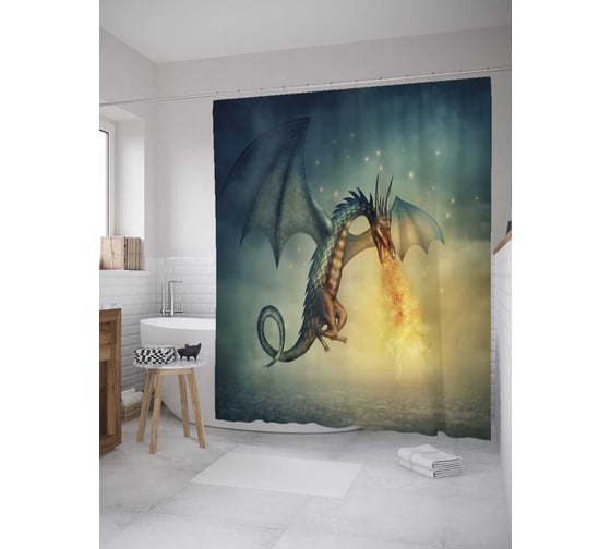 Штора (занавеска) для ванной JoyArty "Огнедышащий дракон" из сатена, 180х200 см с крючками, sc_28334