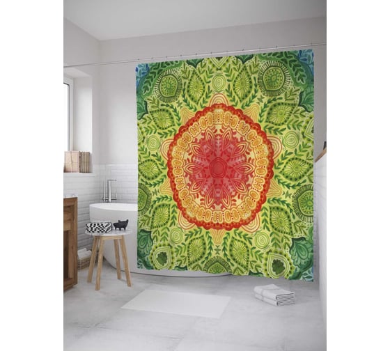 Штора (занавеска) для ванной JoyArty "Огненный цветок" из сатена, 180х200 см с крючками, sc_33875