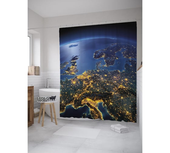 Штора (занавеска) для ванной JoyArty "Огни городов из космоса" из сатена, 180х200 см с крючками, sc_39280