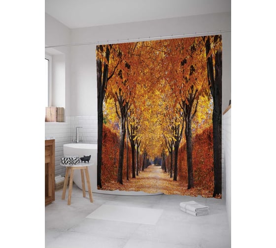 Штора (занавеска) для ванной JoyArty "Огражденная аллея" из сатена, 180х200 см с крючками, sc_2384