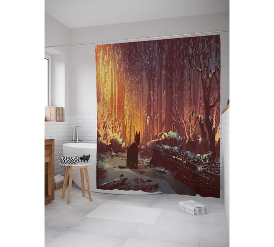 Штора (занавеска) для ванной JoyArty "Охота на мышей" из сатена, 180х200 см с крючками, sc_21795