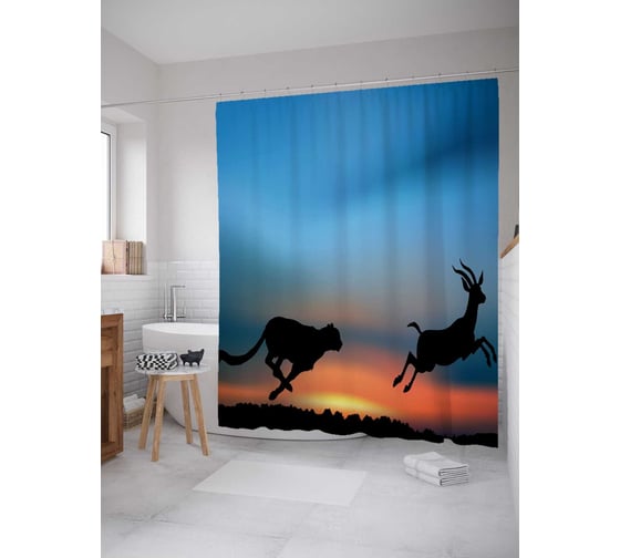 Штора (занавеска) для ванной JoyArty "Охота на рассвете" из сатена, 180х200 см с крючками, sc_29503