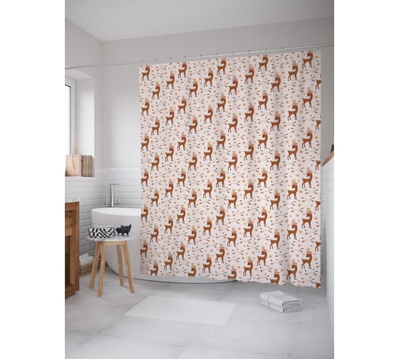 Штора (занавеска) для ванной JoyArty "Олененок с венком" из сатена, 180х200 см с крючками, sc_54607