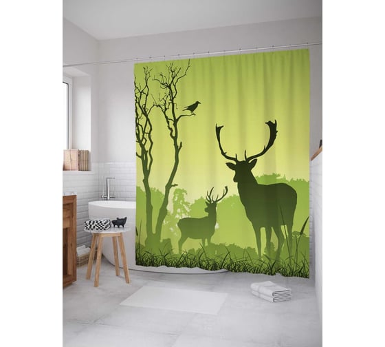 Штора (занавеска) для ванной JoyArty "Олени храбрецы" из сатена, 180х200 см с крючками, sc_12801