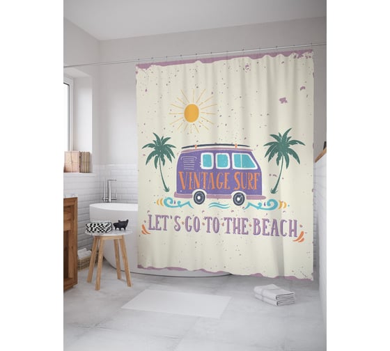 Штора (занавеска) для ванной JoyArty "Опытные серфингисты" из сатена, 180х200 см с крючками, sc_62808